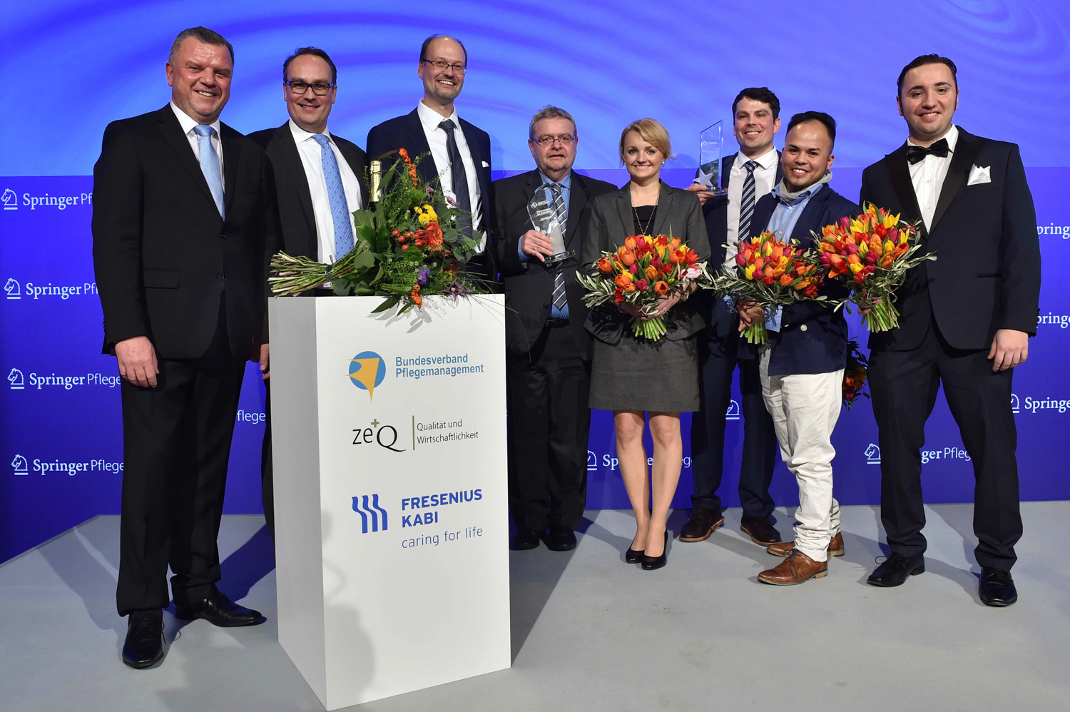 Berlin, 21. Januar 2017. Erstmals wurde der Pflegemanagement-Award gestern in zwei Kategorien verliehen. Der Preis für die Nachwuchsführungskräfte hat mittlerweile bereits Tradition. Neu hinzugekommen ist die Auszeichnung für einen Pflegemanager der Top-Ebene. Der Award ist eine Initiative des Bundesverbands Pflegemanagement in Zusammenarbeit mit Springer Pflege. ZeQ war auch in diesem Jahr wieder Hauptsponsor. Unterstützt wurde die Preisverleihung in diesem Jahr zudem von Fresenius Kabi als weiterem Sponsor.